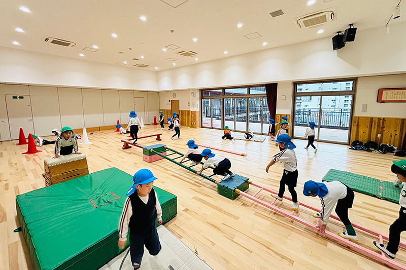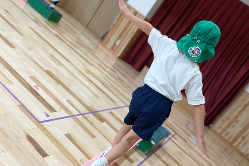 運動遊びや体操、ボール遊びなどを通じて、子どもたちの身体能力や運動感覚を楽しく育みます。